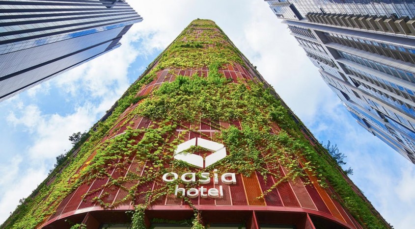Toate cele 60 de etaje ale Oasia Hotel Downtown sunt acoperite de plante din 54 de specii diferite. In decizia organizatorilor a cantarit in special "angajamentul semnificativ fata de spatiul dedicat comunitatii" al cladirii.