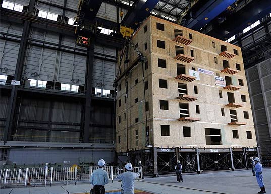 Pana acum cercetatorii au obtinut rezultate promitatorare. In timpul unui test din 14 iulie desfasurat in Japonia la Centrul Hyogo pentru Cercetarea Cutremurelor, cercetatorii au folosit cea mai mare masa de teste (E-Defence shake table) pentru simularea unui cutremur cu magnitudinea de 7.5 grade pe scara Richter. Blocul de locuinte de 7 nivele realizat din lemn si in valoare de un milion de lire, pozitionat pe masa de teste a ramas in picioare, pagubele suferite fiind minore si tinand de elementele exterioare.
