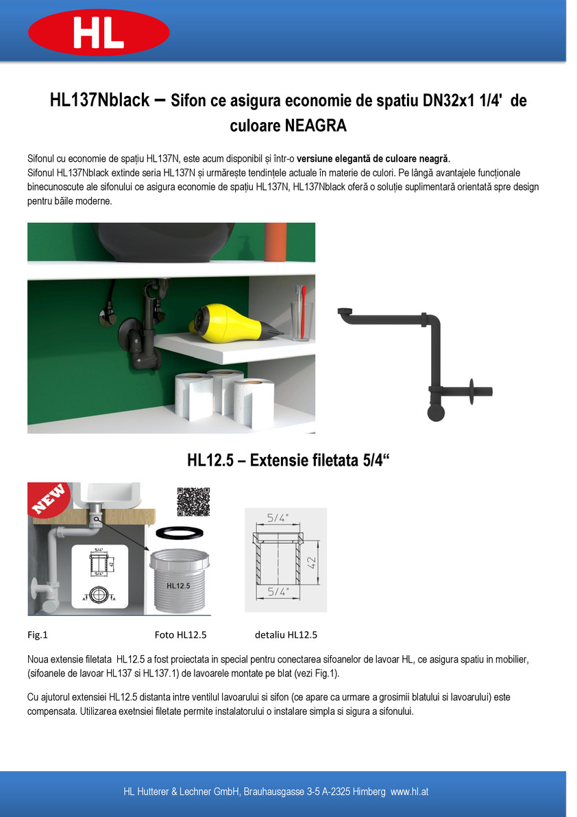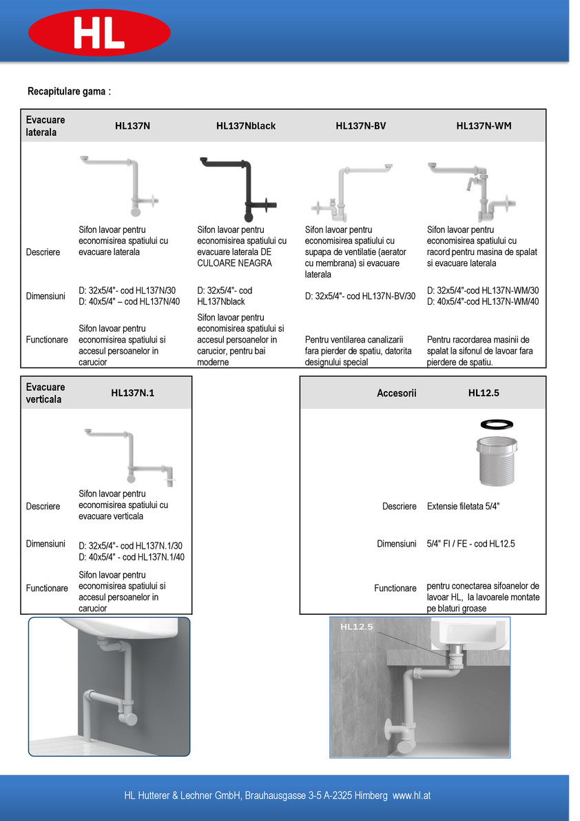 Noua extensie HL12.5 a fost dezvoltată special pentru a facilita conectarea sifoanelor compacte din gama HL (modelele HL137 și HL137.1) la lavoarele moderne montate pe blat.