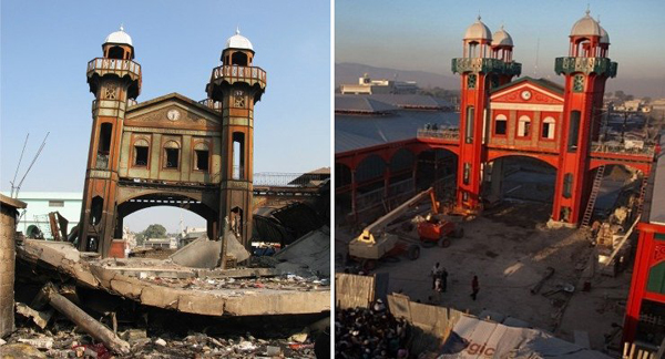 Cladirea "Marche en Fer" a fost initial construita in 1891 si pe parcursul ultimului secol a devenit o emblema pentru cultura, istoria si arhitectura haitiana. In 2008 un incendiu a afectat constructia iar cutremurul de anul trecut a pus-o la pamant, ramanand in picioare doar cele doua turnuri. Arhitectii au proiectat si ajuat la restaurarea cladirii pentru a-i reda imaginea initiala.