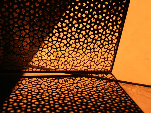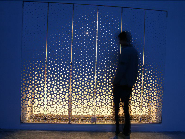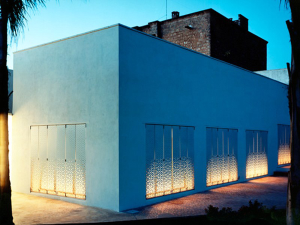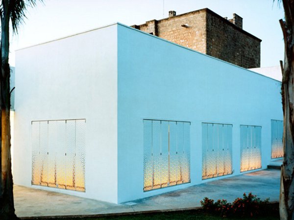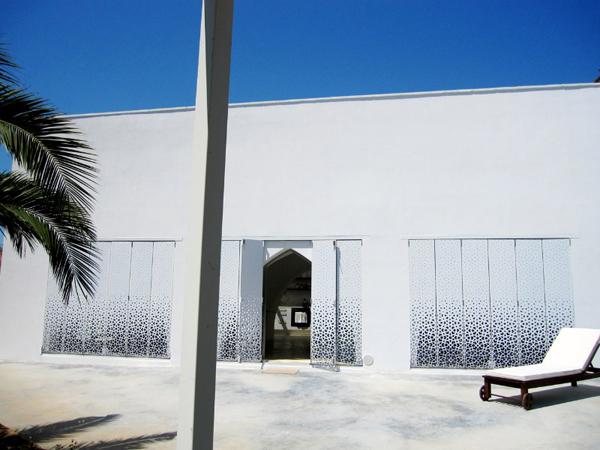 Pentru a pune in valoare arcadele pastrate s-au realizat 36 de panouri pentru ferestre si usi care sa protejeze interioarele de soarele intens. Traforurile din aluminiu au fost realizate cu un model care devine treptat, din ce in ce mai bine definit pe masura ce s-a decupat din material. Modelul realizat este o reinterpretare a clasicului model "liniar" arab. Datorita acestor panouri lumina creaza jocuri de umbre si modele pe pardoselile interioare, iar pe timpul noptii casa devine asemeni unei lanterne, modele fiind puse in evidenta cu ajutorul luminii de la interior.