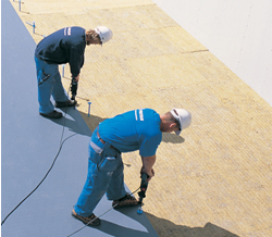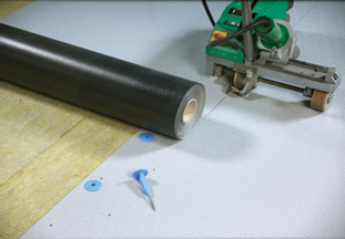 Sistem de acoperis complet si eficient - Sistemul de acoperis monostrat se poate instala aproape pe orice vreme, se poate suda pe ploaie usoara, zapada, temperaturi negative pana la -30° C, este usor de instalat, sigur datorita sudurii cu aer cald (sudura intima la nivel molecular), necesita o intretinere minima si impreuna cu stratul suport si termoizolatia reprezinta un acoperis complet. Membrana se sudeaza cu ajutorul unui aparat automat de sudura cu aer cald la temperaturi de aprox. 500° C si viteze de aprox. 2-2,5 m/min. Pentru lucrari de detaliu se utilizeaza un aparat manual de sudura.
