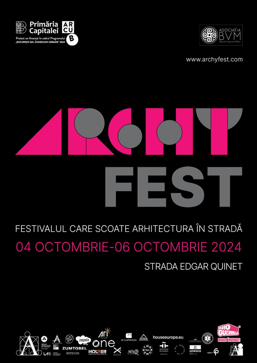 Archy Fest este co-finanțat de Primăria Municipiului București prin ARCUB, în cadrul Programului București 565. Conexiuni urbane – 2024.