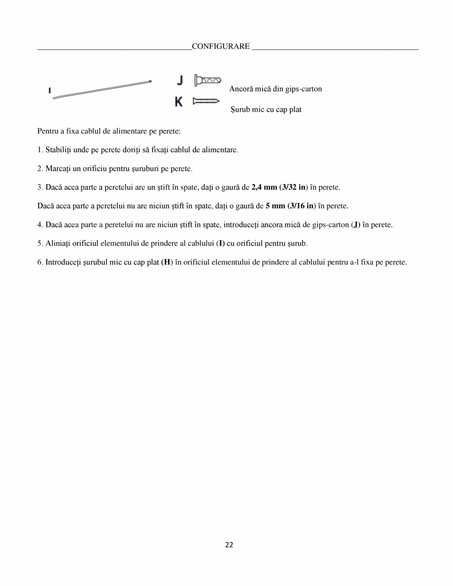 Cablurile de interconectare incluse cu acest sistem nu sunt aprobate pentru instalarea în perete. Vă rugăm să verificați