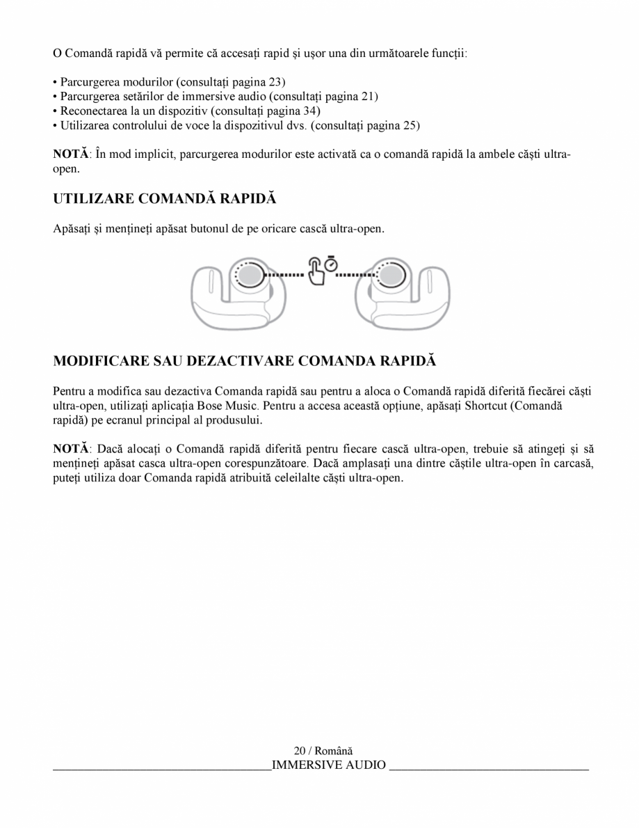 (consultați pagina 20). Apoi, apăsați și mențineți apăsat butonul căștilor ultra-open atribuit acelei comenzi