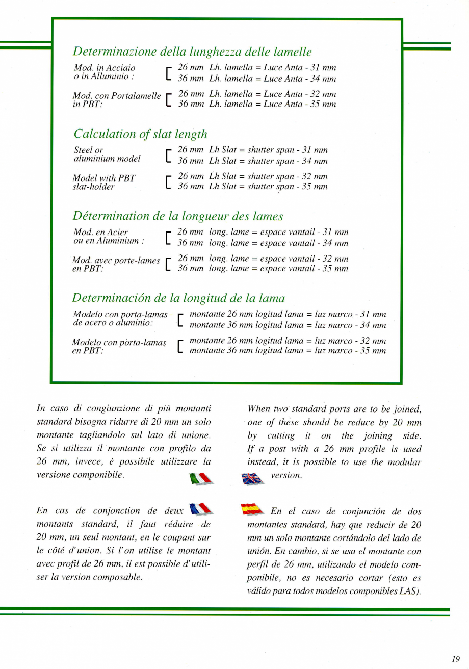 f 26 mm Lh Slat = shutter span - 3l mm