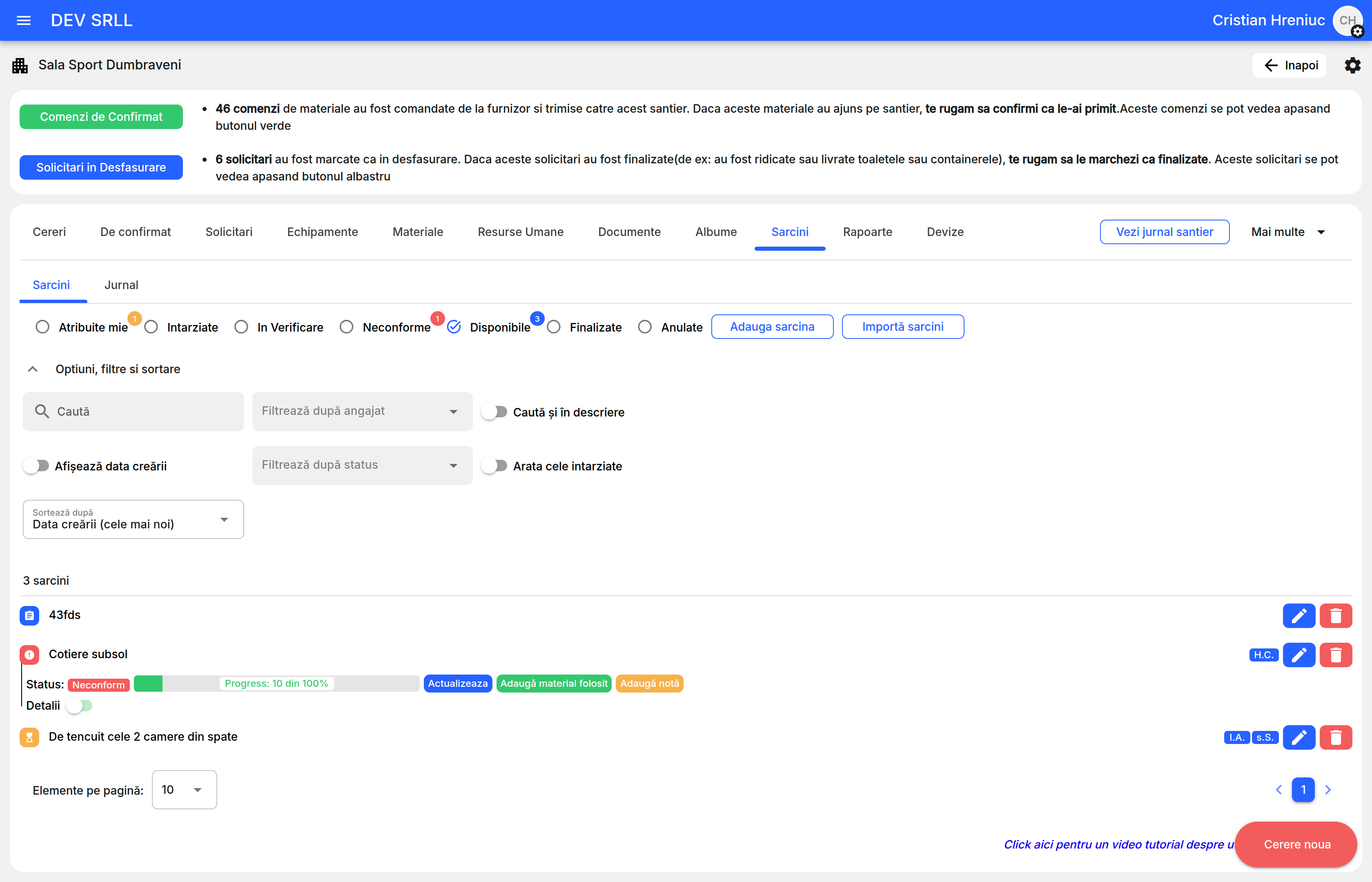 • Task-uri și urmărirea progresului: planificare, atribuiri, termene, status (de făcut / în lucru / finalizat), cu dovadă foto și comentarii.