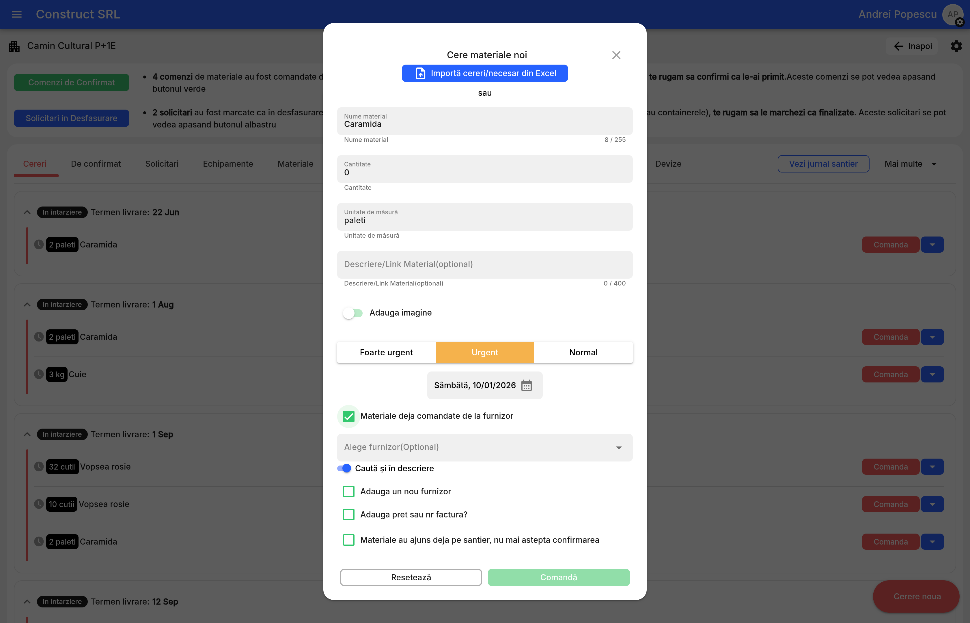 • Rapoarte rapide: rapoarte zilnice/săptămânale generate pe baza datelor introduse, situații de lucrări, materiale folosite, etc.