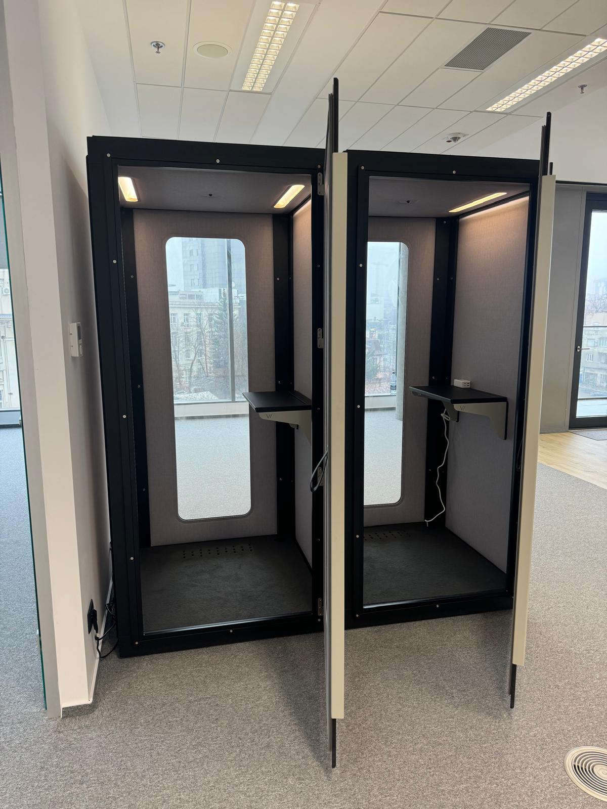VicBooth ofera, practic, un spatiu de liniste controlata, integrat direct in dinamica unui birou modern.