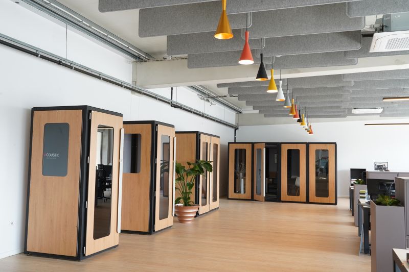 Cabinele limiteaza patrunderea sunetului exterior si controleaza reflexiile interne, oferind un mediu echilibrat acustic. Rezultatul: conversatii clare, fara distrageri.