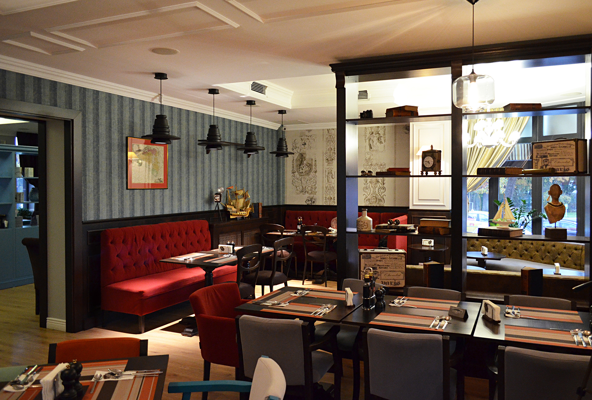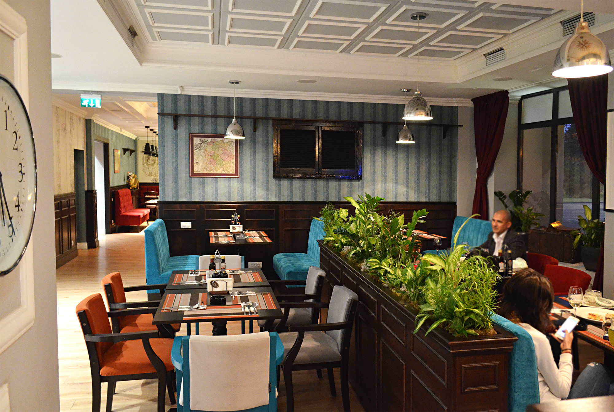 Mobilierul antichizat este executat din lemn masiv de firma Szel Mob si Evo Horeca, ceramica de la Zoiss Design. S-a pus accentul si pe tapiterie si draperii, care sunt in aceleasi nuante cu ambianta. Nu lipsesc nici decoratiunile, care completeaza integritatea stilului Provence: candelabre vintage in culori de alb achizitionate de la ATAS; oglinzi fatetate inramate,picturi cu flori si fructe, sfesnice, cuverturi si perne cu motiv floral, ceasuri, vaze cu flori si alte accesorii.