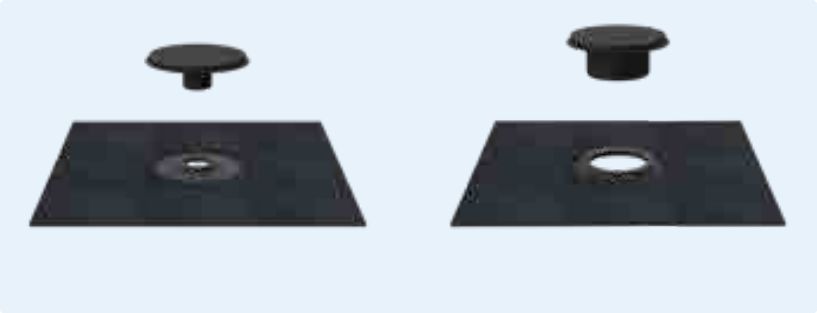 ▲ Etansarea (Conectarea) cu hidroizolatia este inofensiva, fara a exista riscul de a topi teava ca urmare a gulerului de bitum pre-fixat pe piesa.