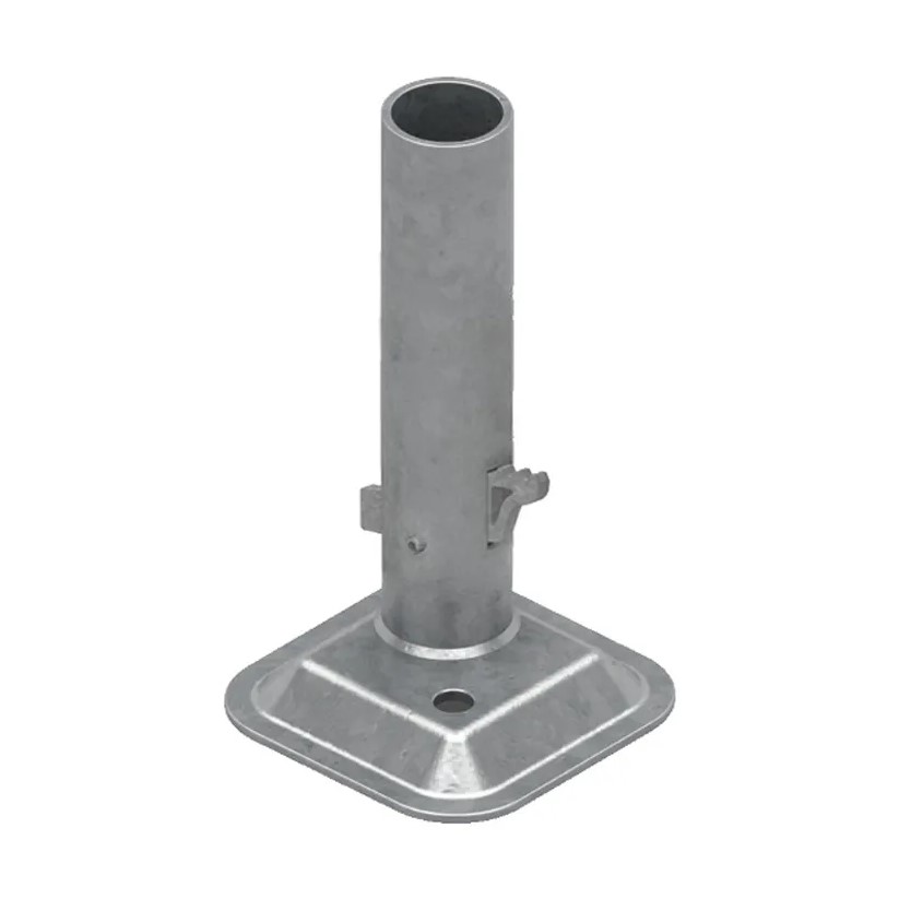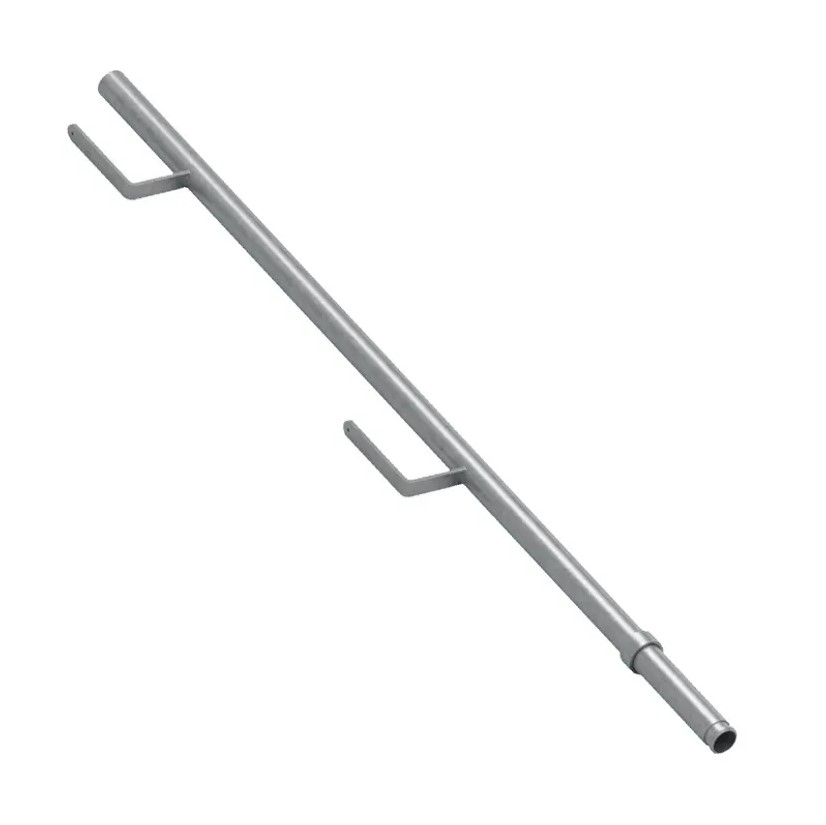 Stâlp de sistem EPS cu două cârlige universale care permit asamblarea oricărui tip de balustradă folosit in asamblarea tuturor tipurilor de panouri EPS (panouri plasă, scânduri și țevi de eșafodaj).