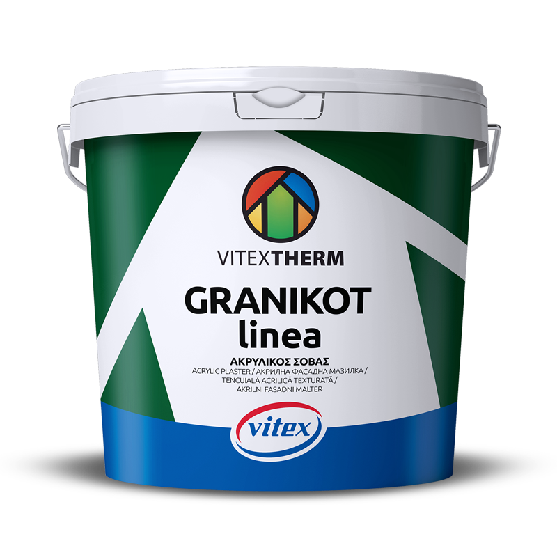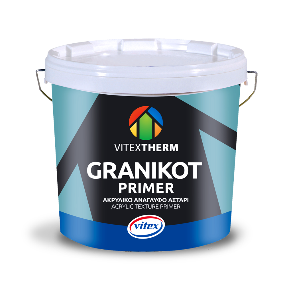 Amorsă acrilică albă texturată ideală pentru suprafeţe interioare şi exterioare din tencuială, ciment sau suprafeţe acoperite cu vopsele pe bază de apă (emulsii, acrilice, etc.). Îmbunătăţeşte aspectul, are putere mare de acoperire, asigură aderența şi durabilitatea tencuielii acrilice şi siliconice GRANIKOT pe suprafeţe netede sau inegale. Este parte din Sistemul de izolaţie termică exterioară VITEXTHERM, Sistem compozit (ETICS), care este certificat cu marcajul CE în conformitate cu cerinţele de EAD 040083-00-0404.