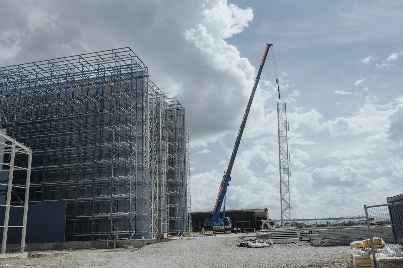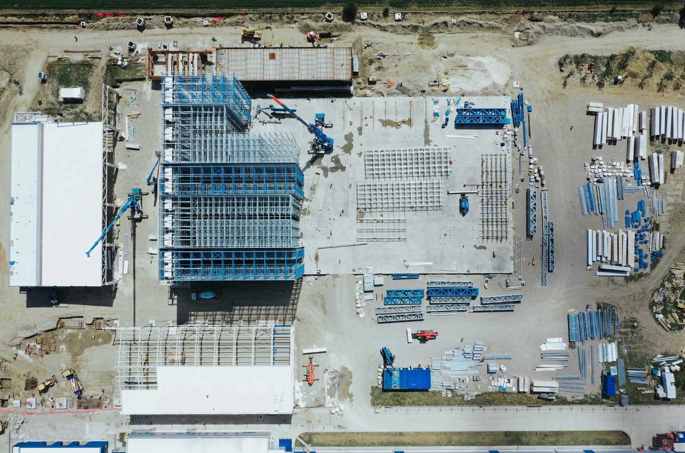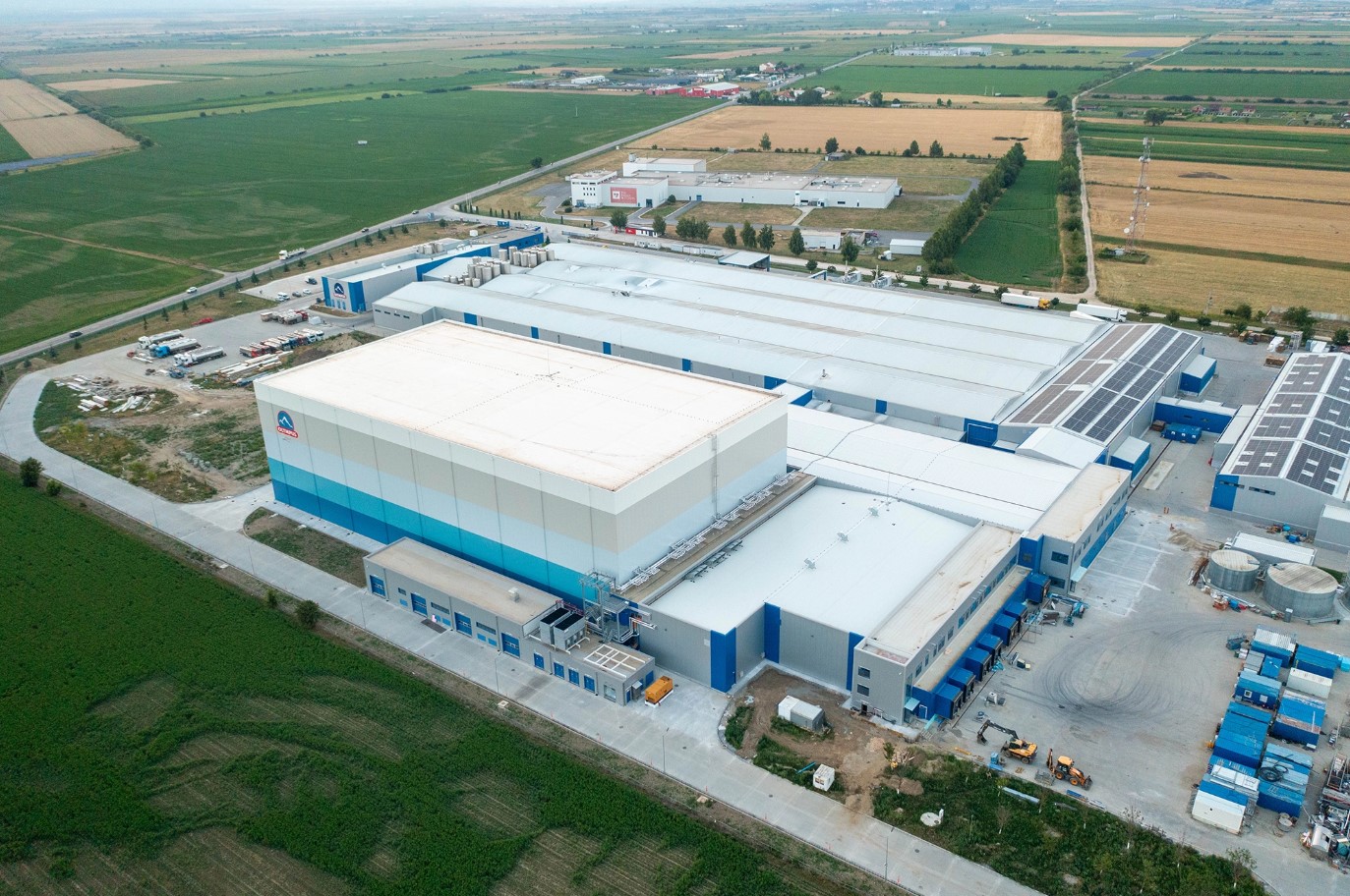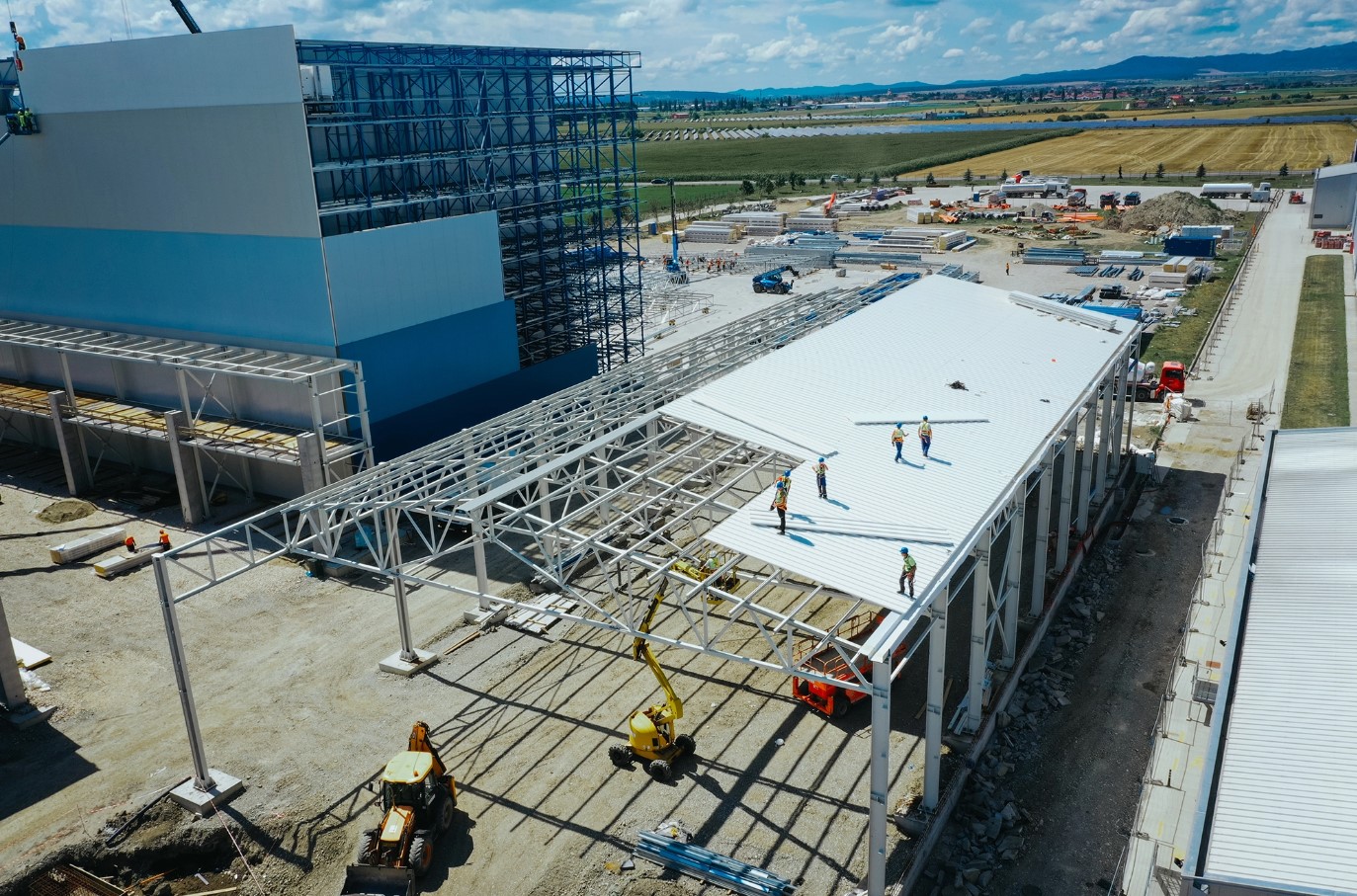- Peste 500 de tone de structură metalică, susținând 21.000 mp de panouri pentru fațadă, acoperiș și spații frigorifice;